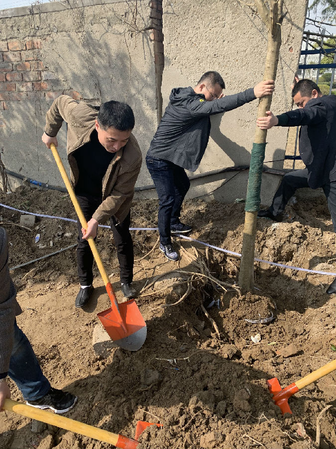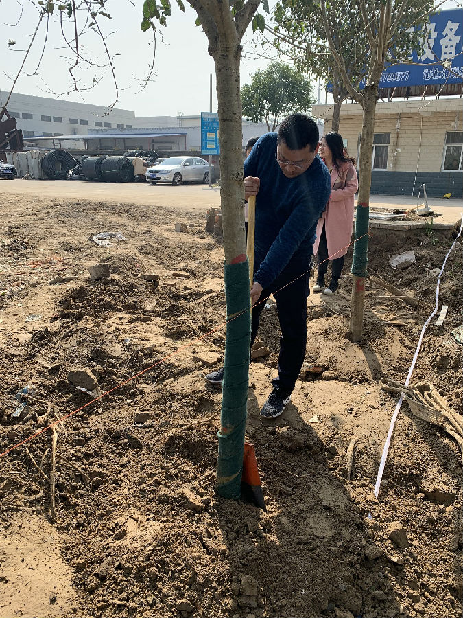植樹活動開始前,徐書記作了動員講話,參加植樹活動的30多名黨員和志愿者,紛紛熱情高漲、干勁十足,大家丈量拉線、按點挖坑、揮鍬培土,配合協(xié)調,各道工序一絲不茍,忙碌的身影隨處可見,植樹現(xiàn)場一派熱火朝天的勞動場景。經(jīng)過大家的辛勤勞動,30多株大葉女貞樹苗種植在凱通檢測院內,形成一道亮麗的生態(tài)、綠色風景線,更顯勃勃生機。