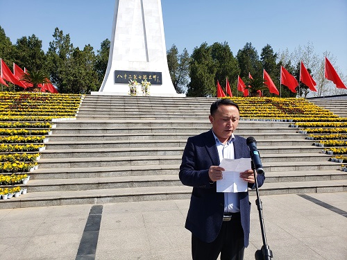 公司黨委書記徐向峰代表公司向英勇的革命烈士們敬獻(xiàn)了花籃,同時(shí)發(fā)表了講話。他說這八十二位烈士是為淮陰人民而戰(zhàn),是為祖國而戰(zhàn),他們是無數(shù)抗日先烈的一部分,我們要深切緬懷所有的為國犧牲的革命先烈!現(xiàn)如今,在以習(xí)近平同志為核心的黨中央的帶領(lǐng)下,在習(xí)近平新時(shí)代中國特色社會主義思想引領(lǐng)下,中國特色社會主義進(jìn)入了新時(shí)代,作為新時(shí)代的共產(chǎn)黨員,我們要繼續(xù)傳承先烈遺志,宏揚(yáng)他們不畏艱難、不怕犧牲、英勇頑強(qiáng)的革命精神,服從大局、心中無我的擔(dān)當(dāng)精神。徐書記號召大家要加強(qiáng)自我修煉,全面提高自我,事事有擔(dān)當(dāng)、能擔(dān)當(dāng)、會擔(dān)當(dāng),盡顯先鋒模范的帶頭作用,帶領(lǐng)一代一代水建人,為淮陰水建更加美好的明天而努力奮斗。